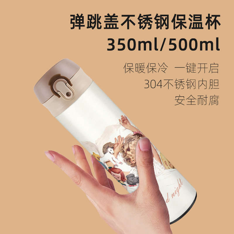 Original cute girl girl Heart ins Wind minimalist Insulation Cup Cartoon Creativity Bounce Cover Glass and American Students
