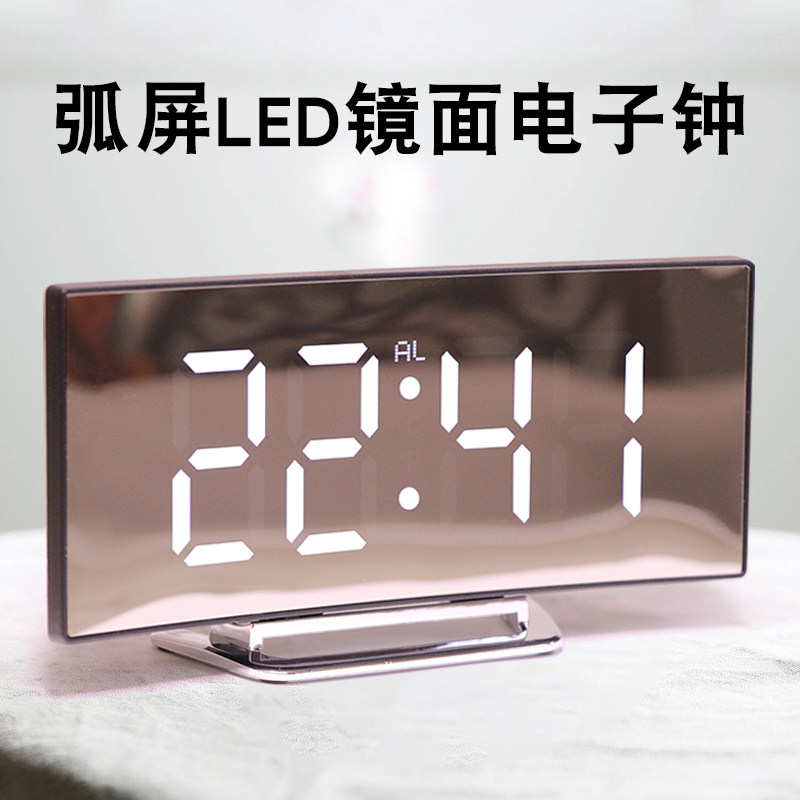 New creative curve screen LED mirror electronic alarm clock greed temperature displays silent clock living room