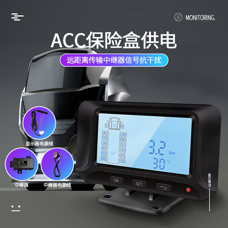 Engineering vehicle truck passenger car RV gravel truck truck beam car tire pressure monitor external 6-wheel 22-wheel multi-wheel