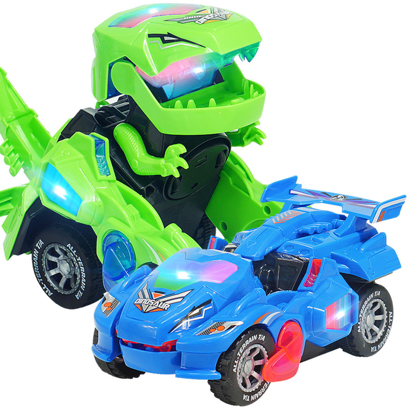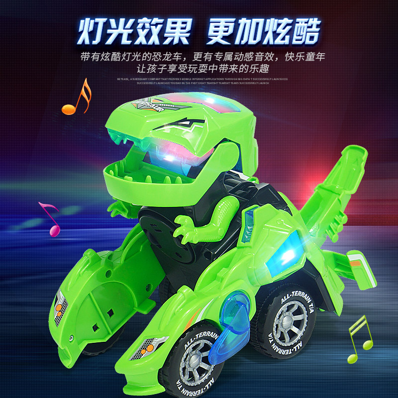 Shaking the same electric dinosaur T-rex deformation car Children's toy simulation animal can walk moving sound and light baby