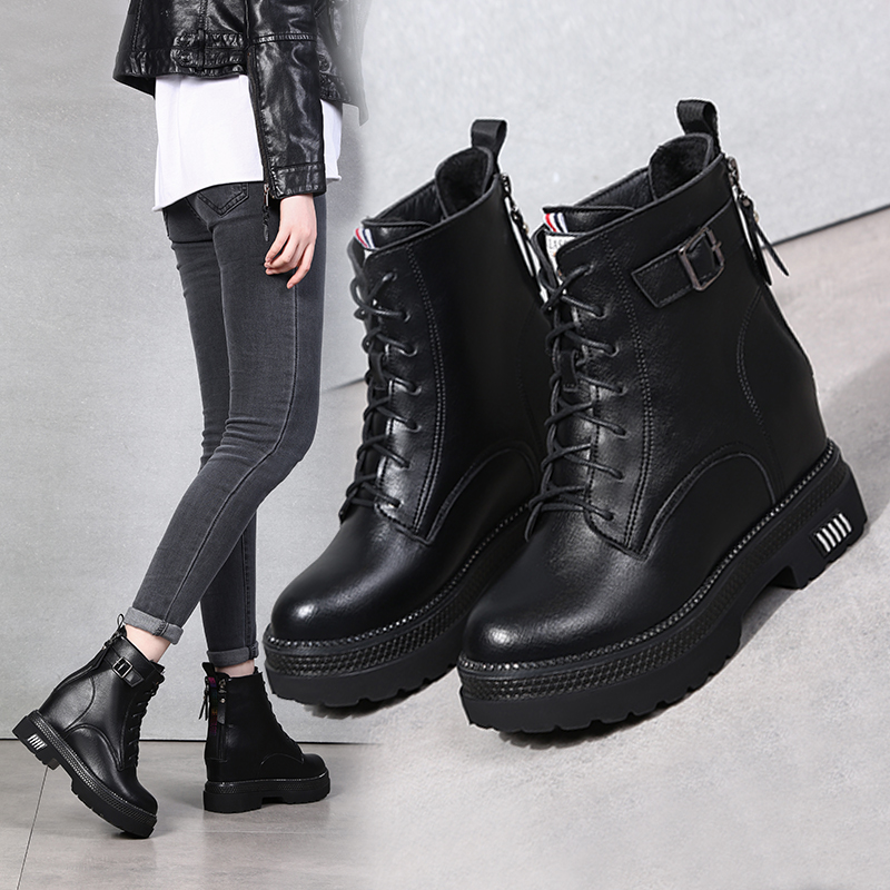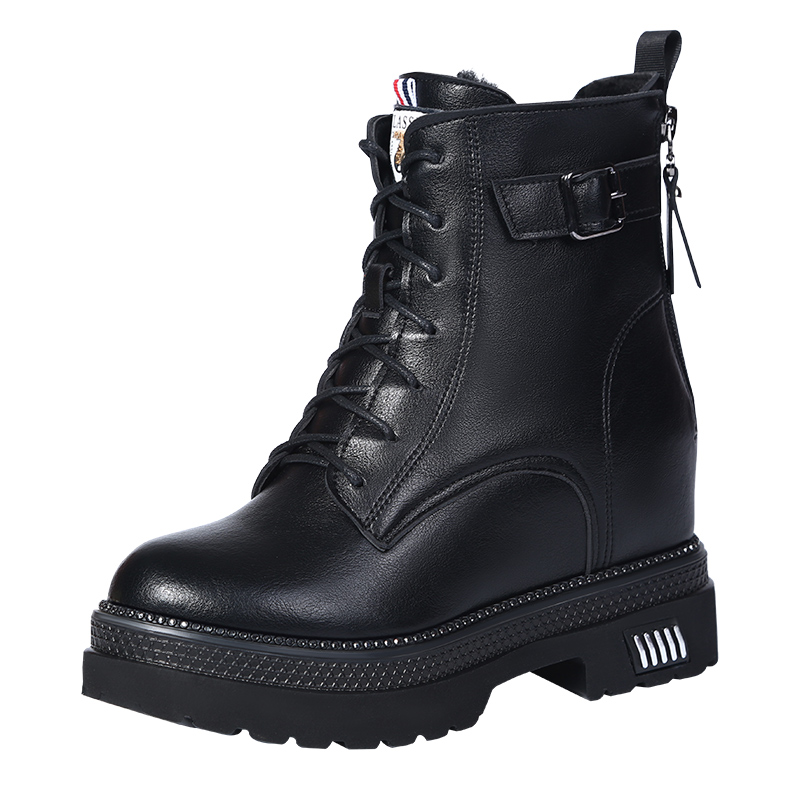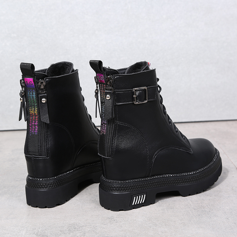 Inside heightening dazzling double pull chain short boot female plus suede thickened warm cotton shoes Snow ground boot thick bottom pine pastry Martin boots
