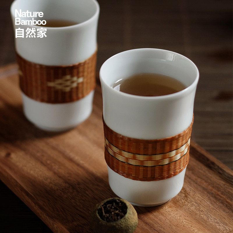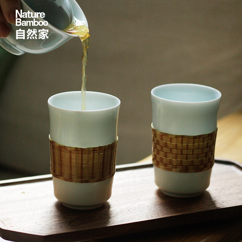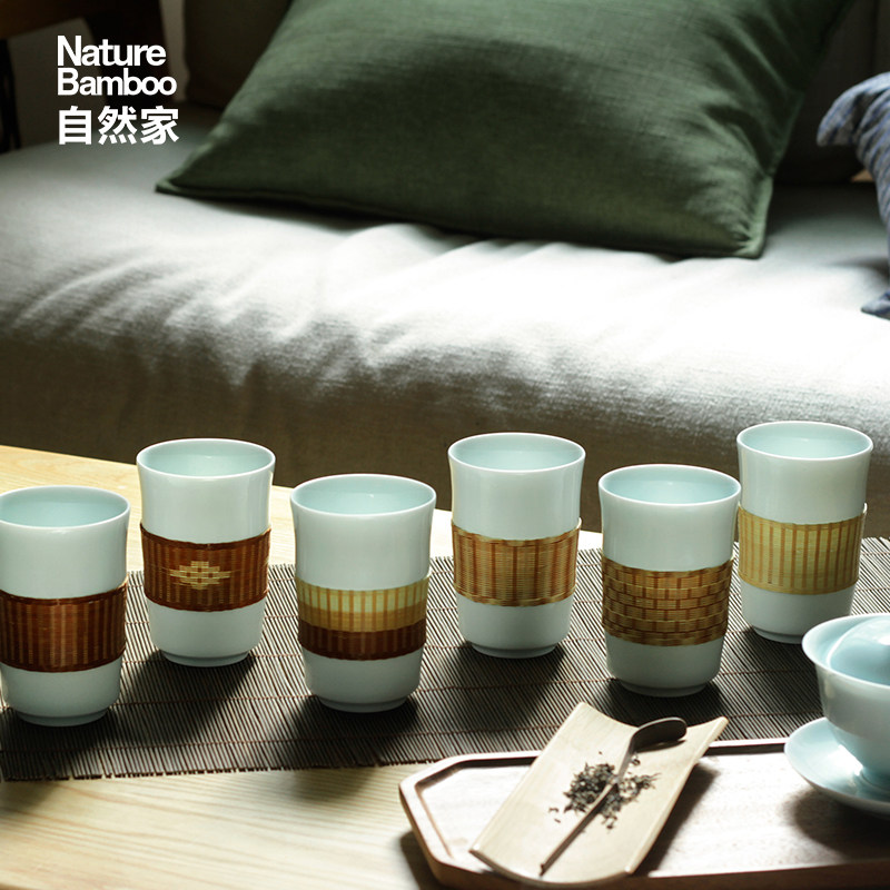Natural Home Non-suicide Bamboo Buttons Porcelain Japan Style Tea Set Bamboo Movie Cups Single Cup Jingdezhen Water Glass Home Suit Gift