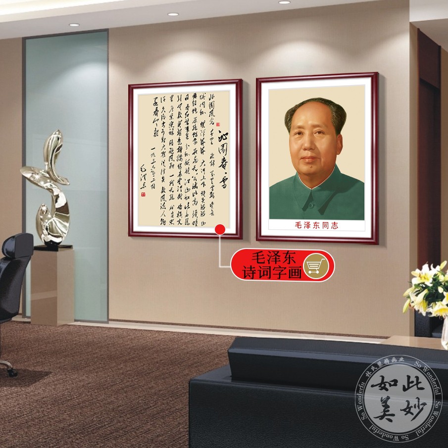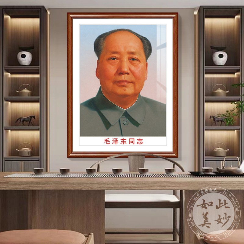Mao main statue of the wall painting Weiman painting swing statue with frame Xuanguan Zhongtang Zhongtang Living room Book room decoration mural Chair head portrait hanging painting-Taobao