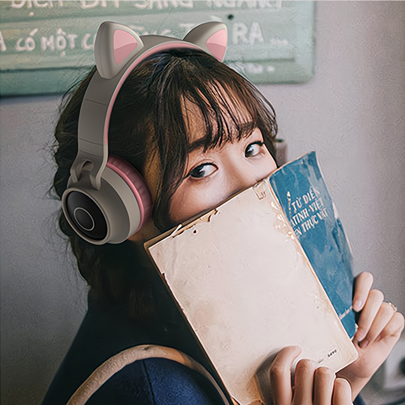 Wireless Bluetooth Headphones Headsets Online Red Cat Ears Luminous Cartoon Apple Huawei Generic Game Mcgirl Hearts