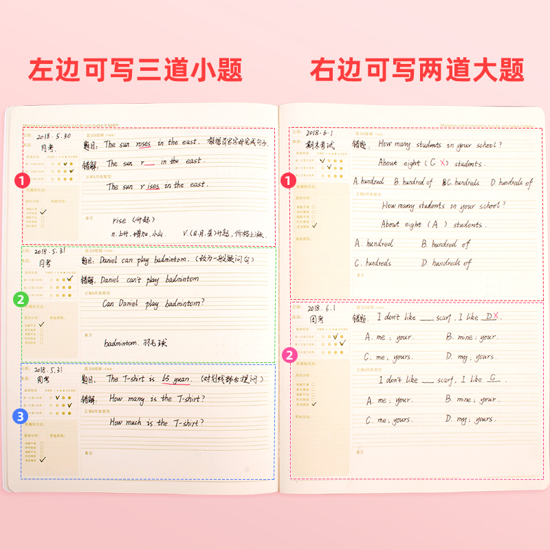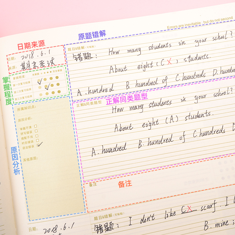 English dedicated wrong topic Ben junior high school students change the wrong questions Collegiate notebooks High school students use 16k exam for college students creative cute adolescent girl error correction Ben