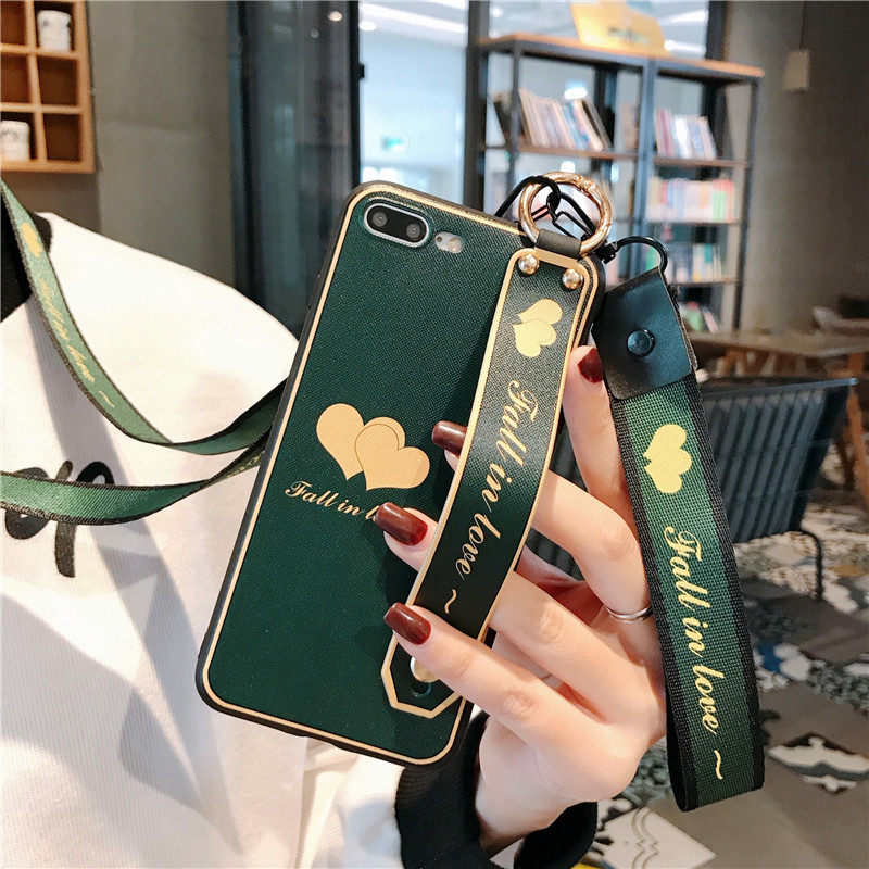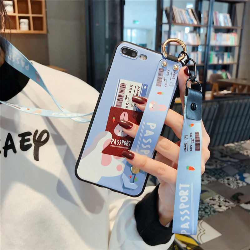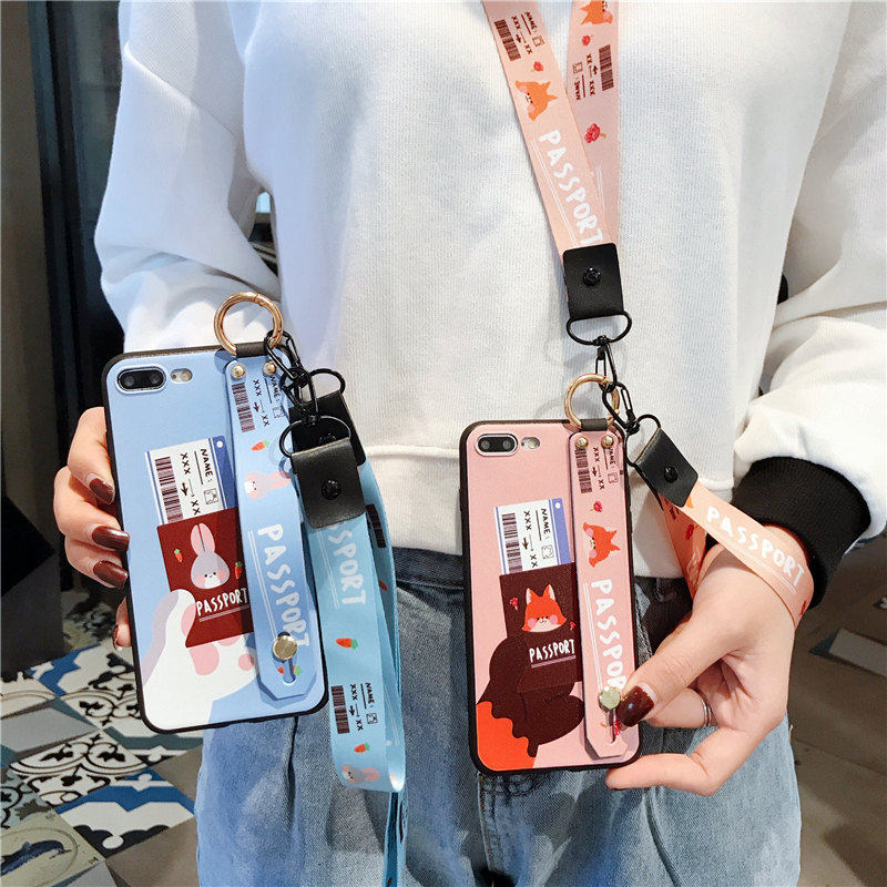 Hanging neck phone protective shell Apple 6s hanging neck iPhone7plus mobile phone protective shell hanging rope Apple 8plus mobile phone protective shell wrist-protecting apple 8 mobile phone protective sleeve hanging rope bracket