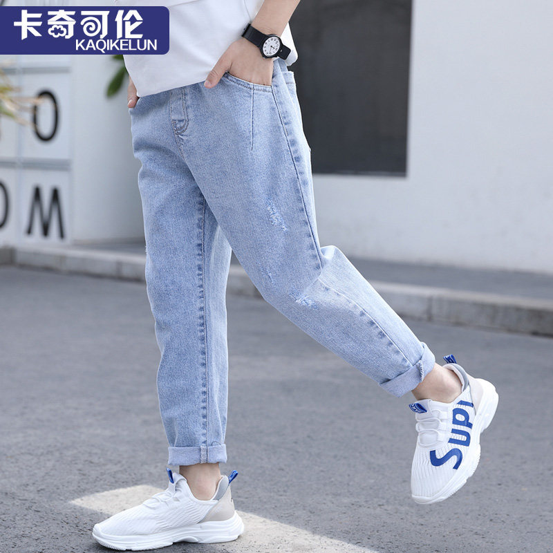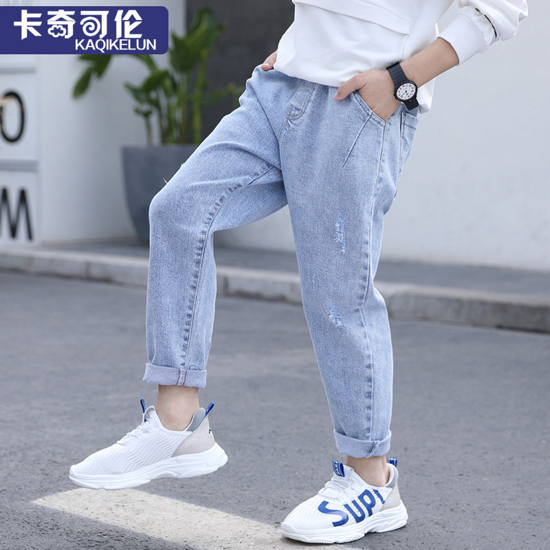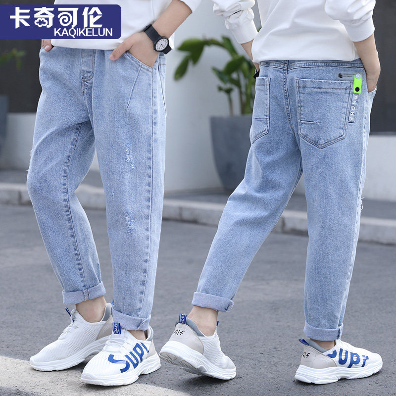 Boys jeans Autumn children's pants Summer thin Western style boys handsome middle and large children's casual pants spring and autumn tide