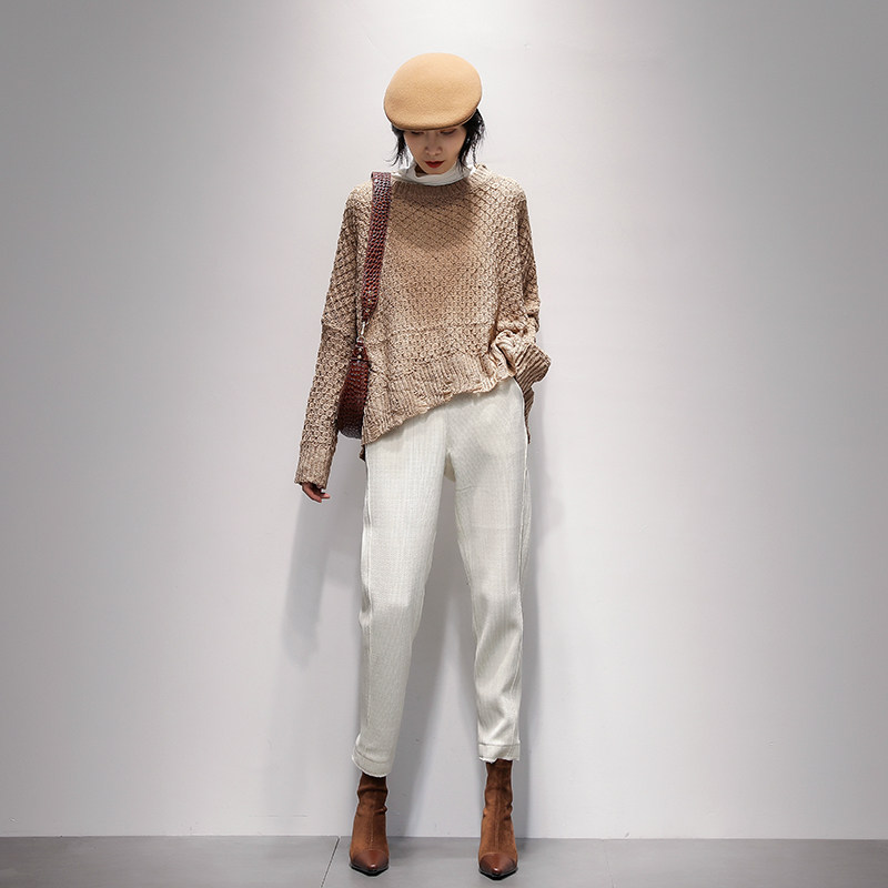 Mi White Leisure Pants 2022 new Han edition high waist vertical pipe pants loose and broad leg trousers
