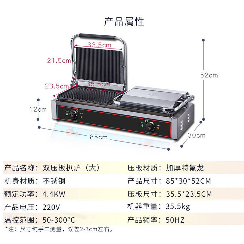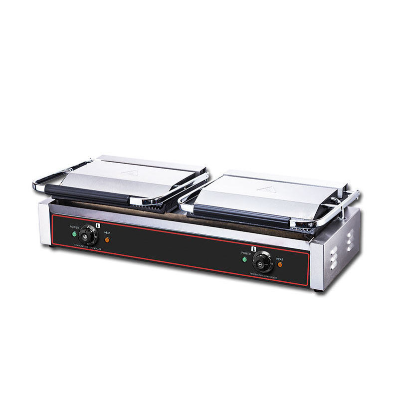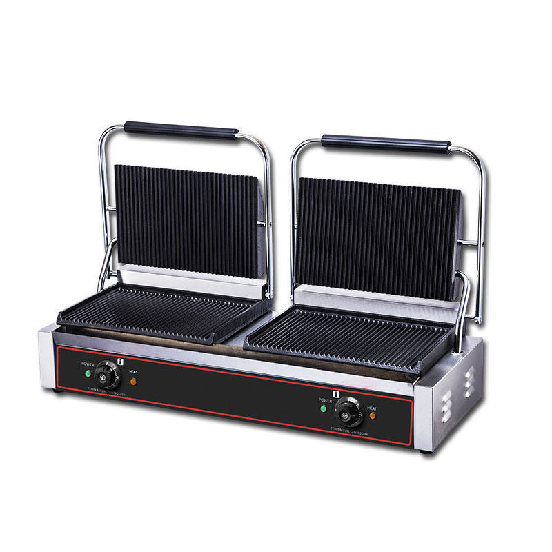 Electric Heating Double Head Commercial Pressure Plate Pickle Furnace Panini Machine Full Pit Triveal Grilled Meats Roast Bread Press Steak Machine