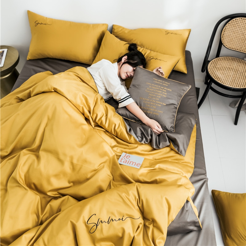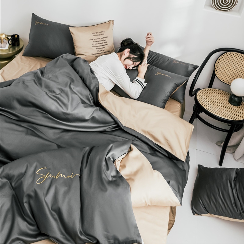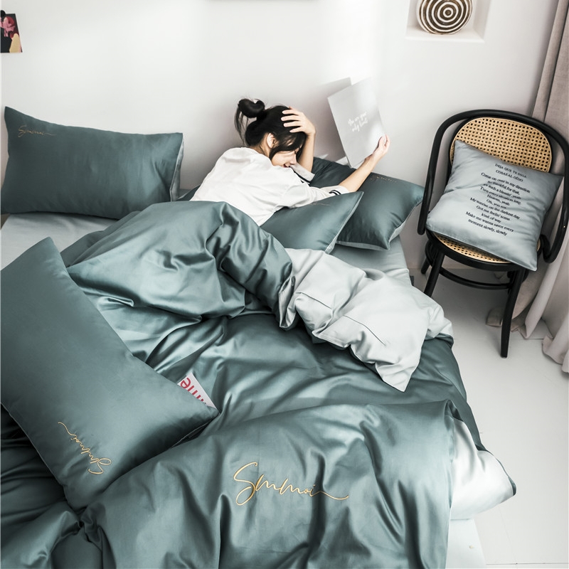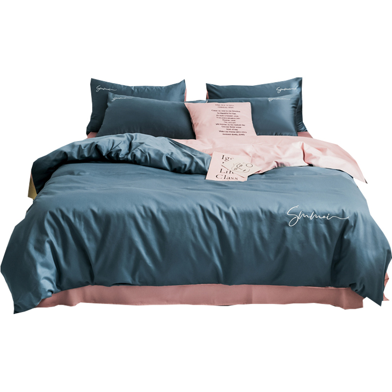 Cotton 60pcs satin plush cotton four-piece embroidered cotton duvet cover sheet Sheet Fitted sheet 1 8m bed bag Set Solid color
