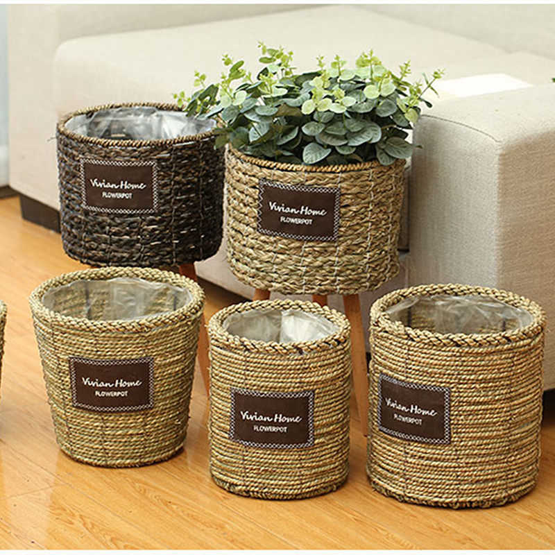 Creative European-style floor-to-ceiling living room decorations indoor small flower stand straw flower arrangement flower basket gold ge flower pot rattan flower basket