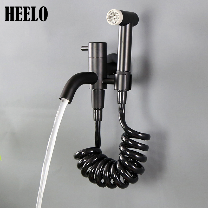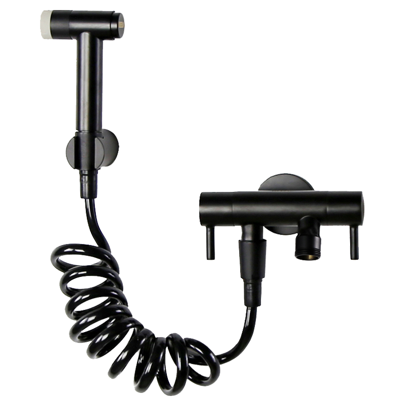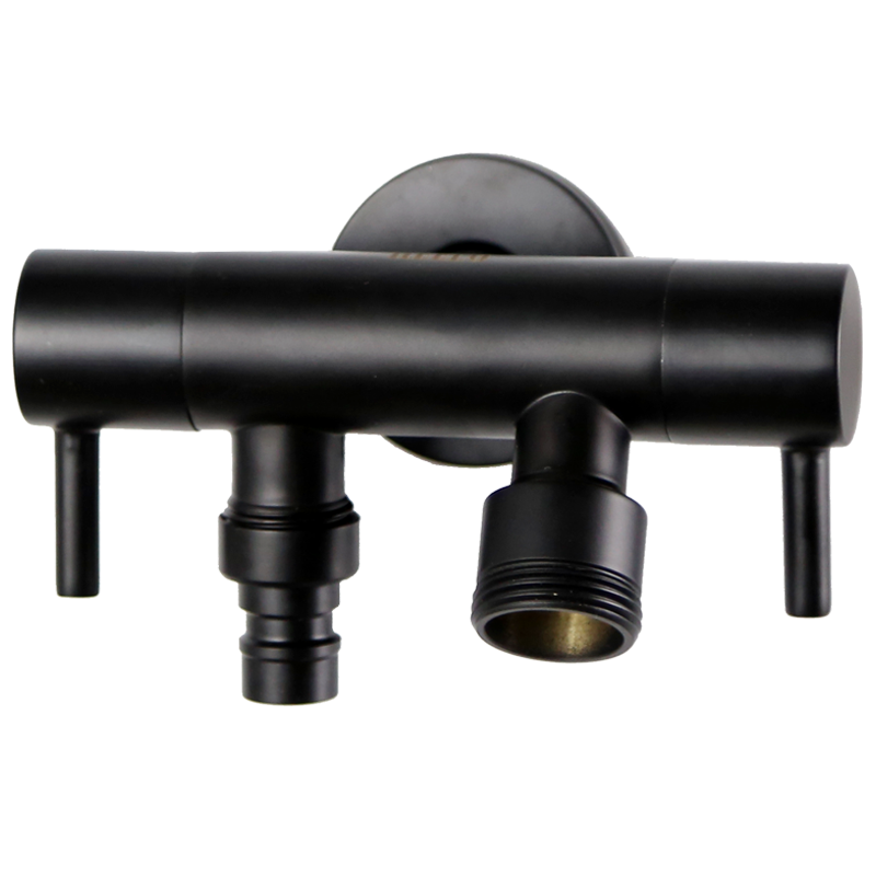 Copper black one-in-two water tap angle valve with spray gun suit double open water heater washing machine toilet mate