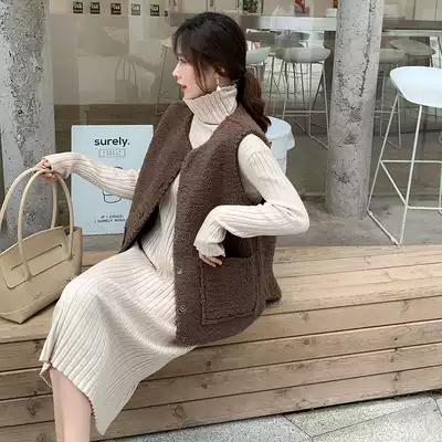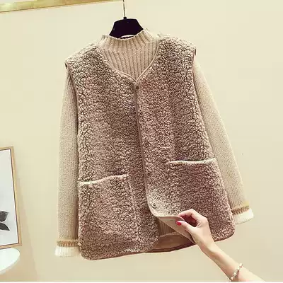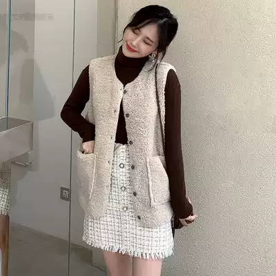 Lamb hair vest women wear new spring and autumn 2020 new plush horse clip leather wool body wool vest waistcoat shoulder tide