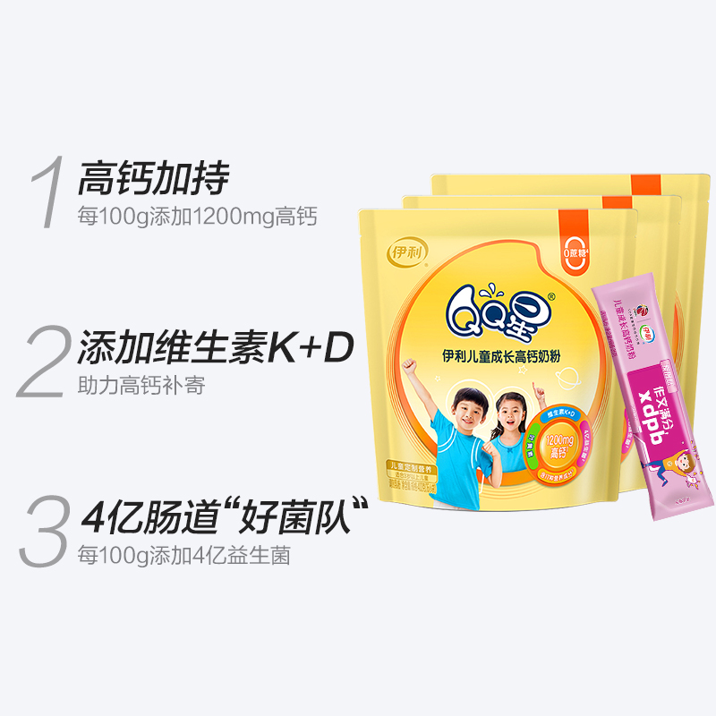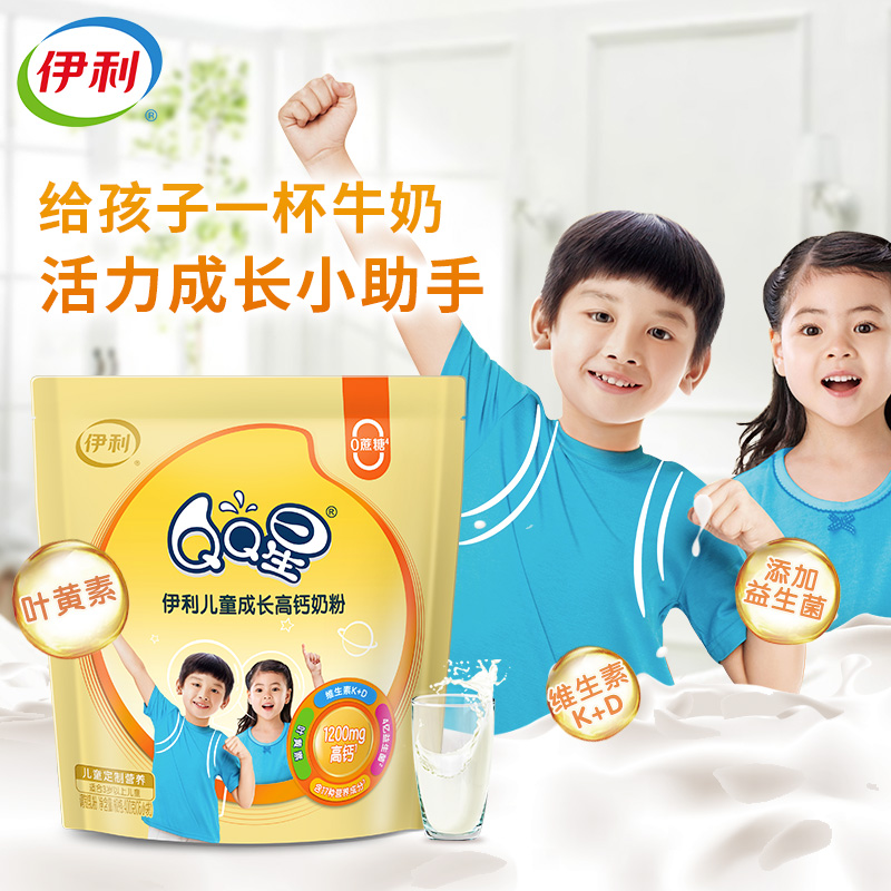 Yili children's growth high calcium milk powder 400g*2 bags of calcium iron zinc nutrition milk powder for primary school students over 6 years old