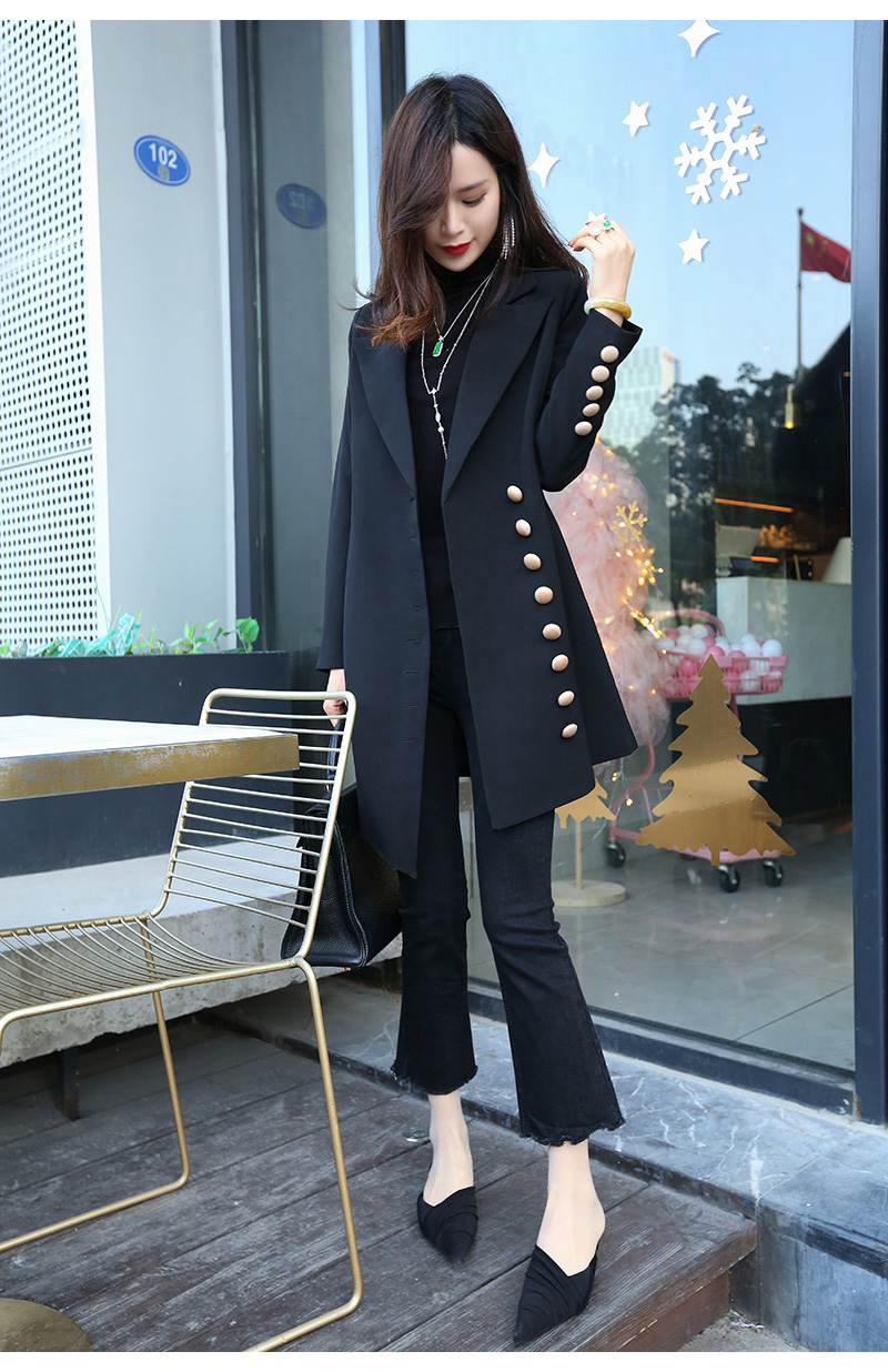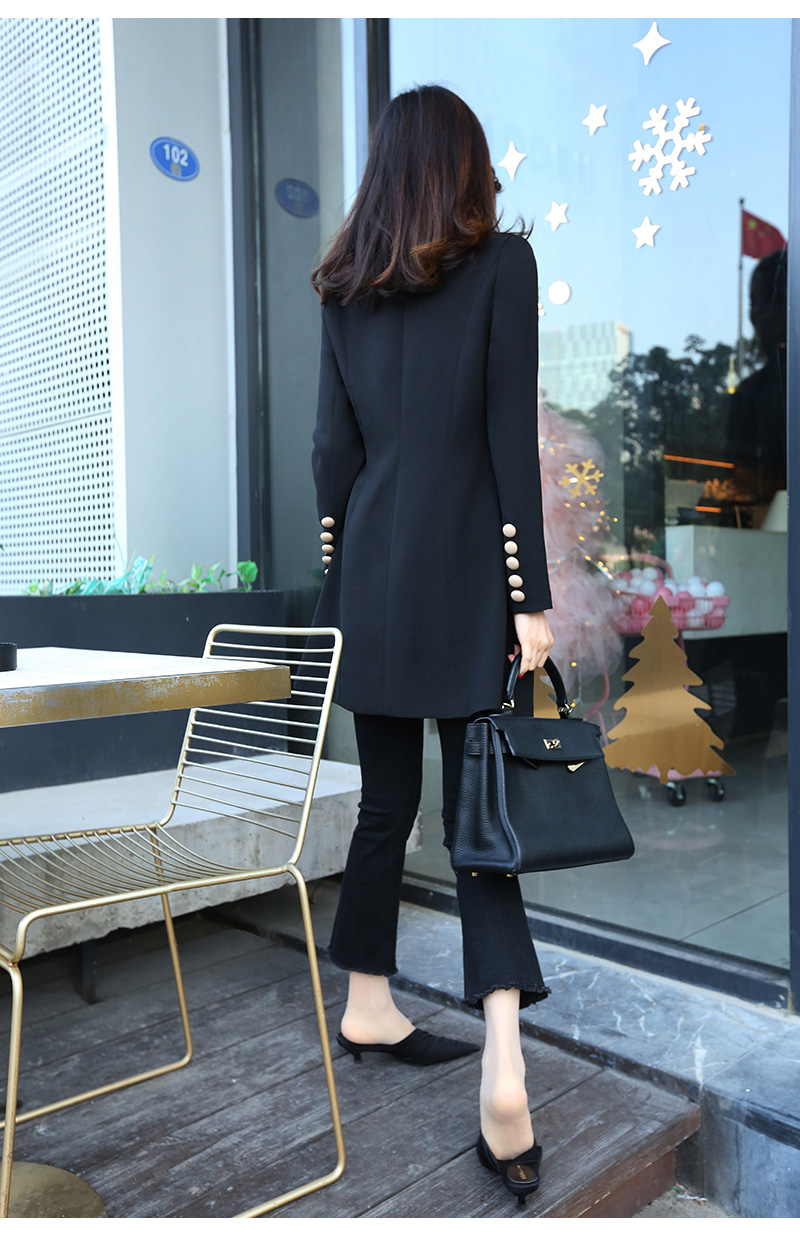 2021 Autumn loaded with new spring and autumn new medium long version suit jacket commuter coat black Korean version female