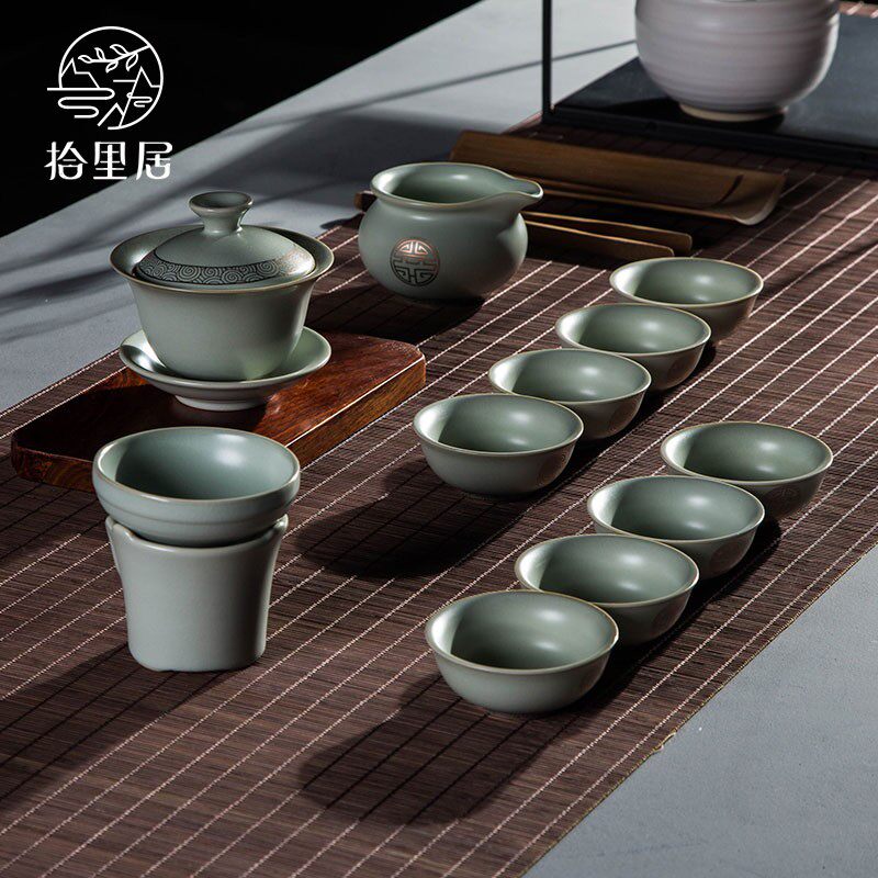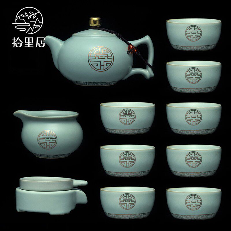 Shiliju Ru kiln kung fu tea set set Ru porcelain ceramic opening cover bowl teapot teacup tea ceremony gift