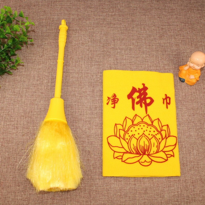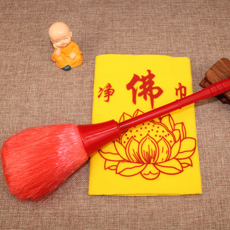 Buddha dust sweep the dust and dust cleaning the Buddha statue cleans the dust and dust brush