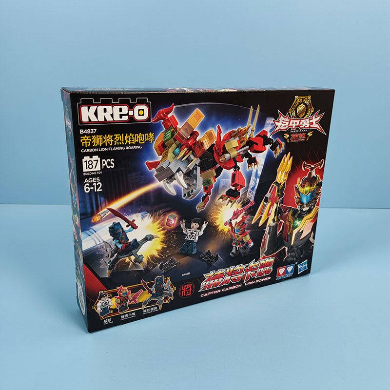 Audi double diamond armor warrior catches the emperor lion and roars the flame to assemble the toy puzzle to insert the card