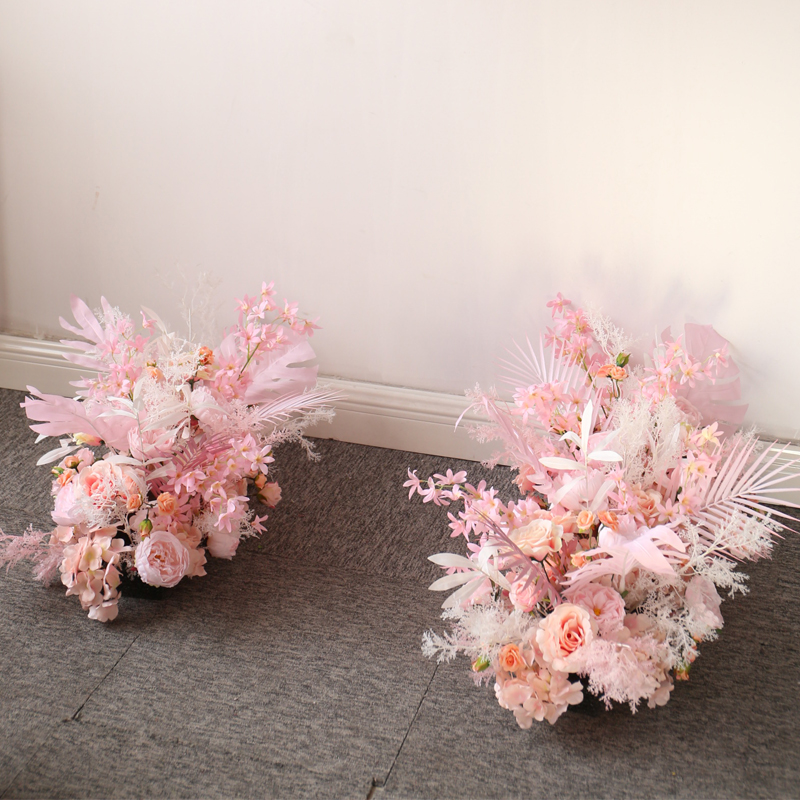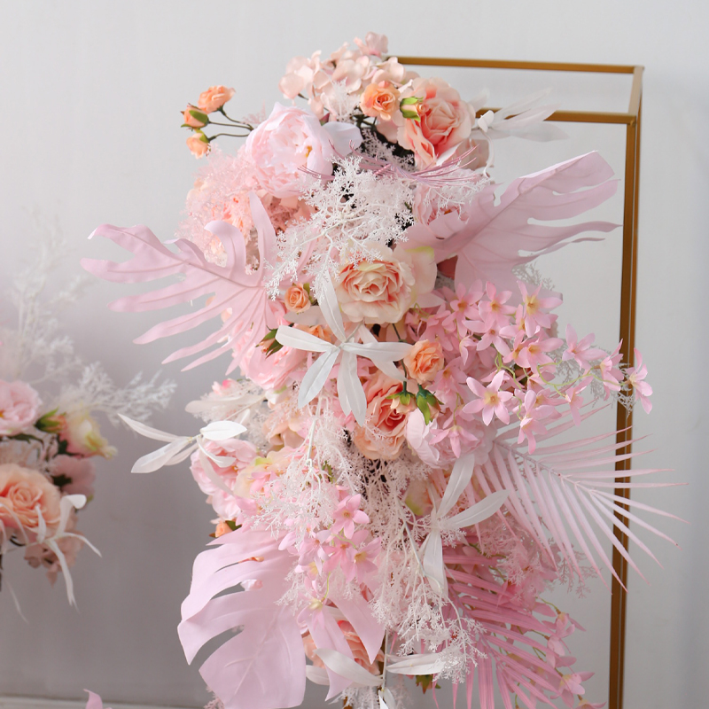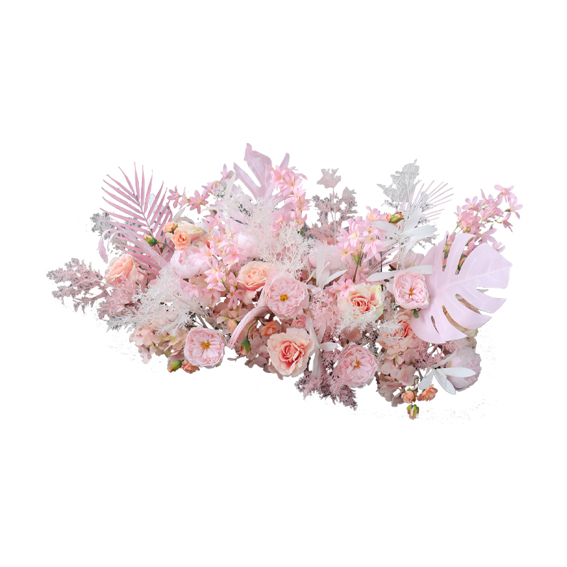 New road lead flower wedding festival T stage walkway flower row pink floor row flower simulation flower arrangement decoration pink