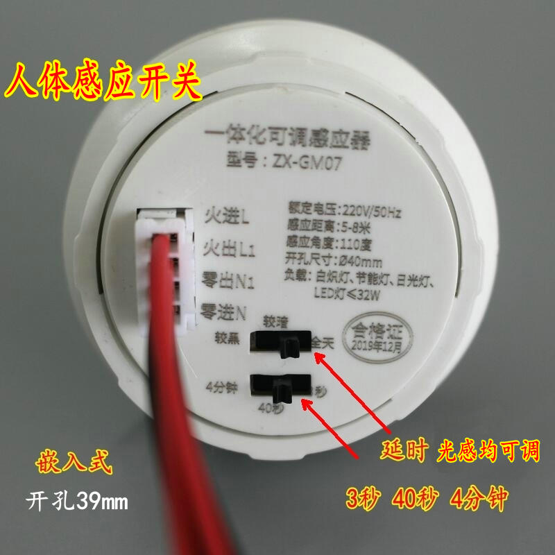 LED body infrared sensor adjustable switch ceiling module hidden probe corridor home intelligent delay