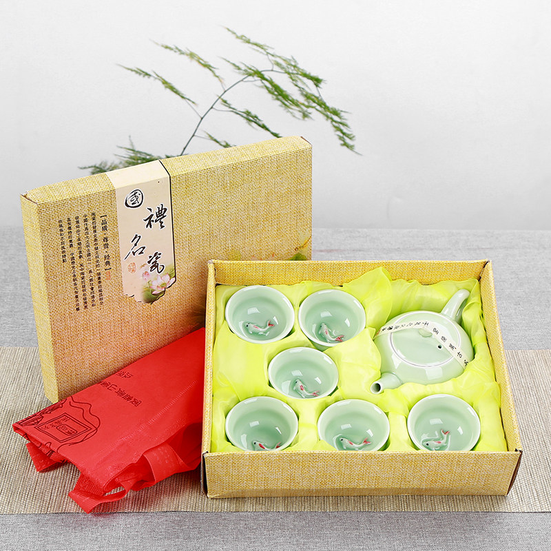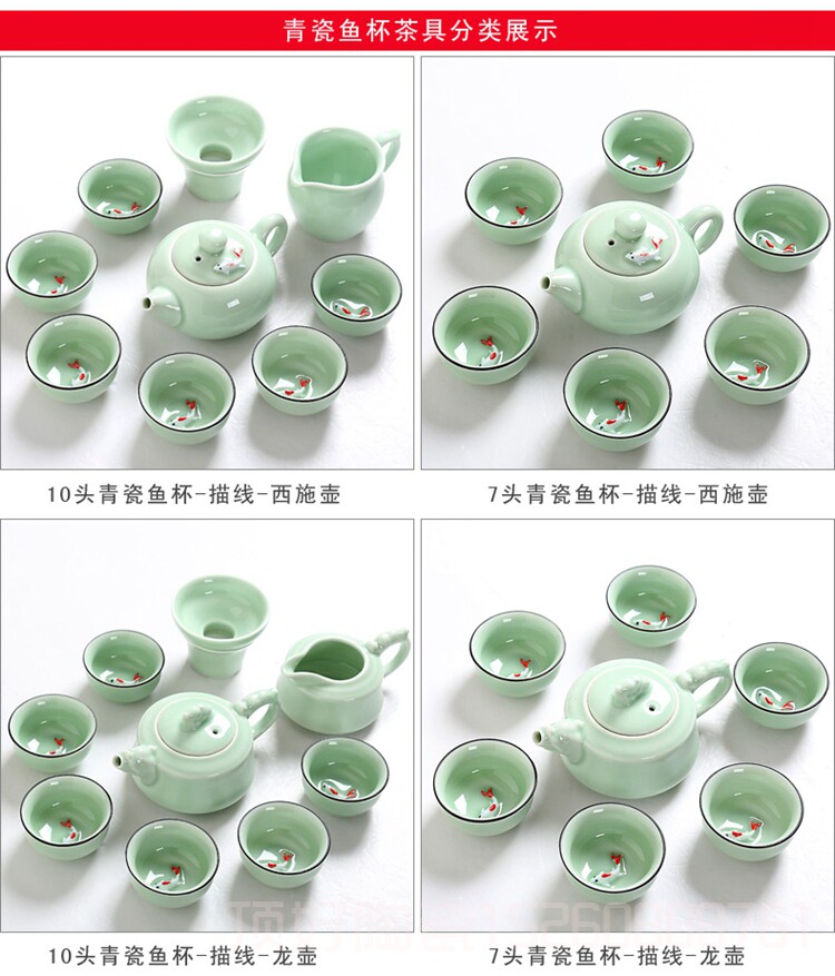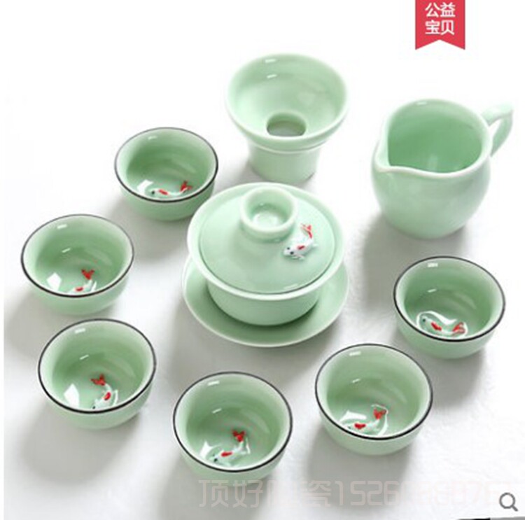 Green porcelain fish cup 1 6 only shipped 6 pure colour tea cups 7 head carp cover bowl 7 head carp teapot 10 head carp lid bowl 10 head carp teapot 12 head carp big suit 7 head pure color cover bowl 7