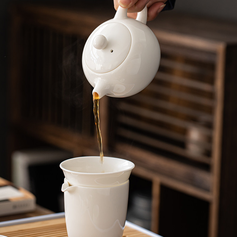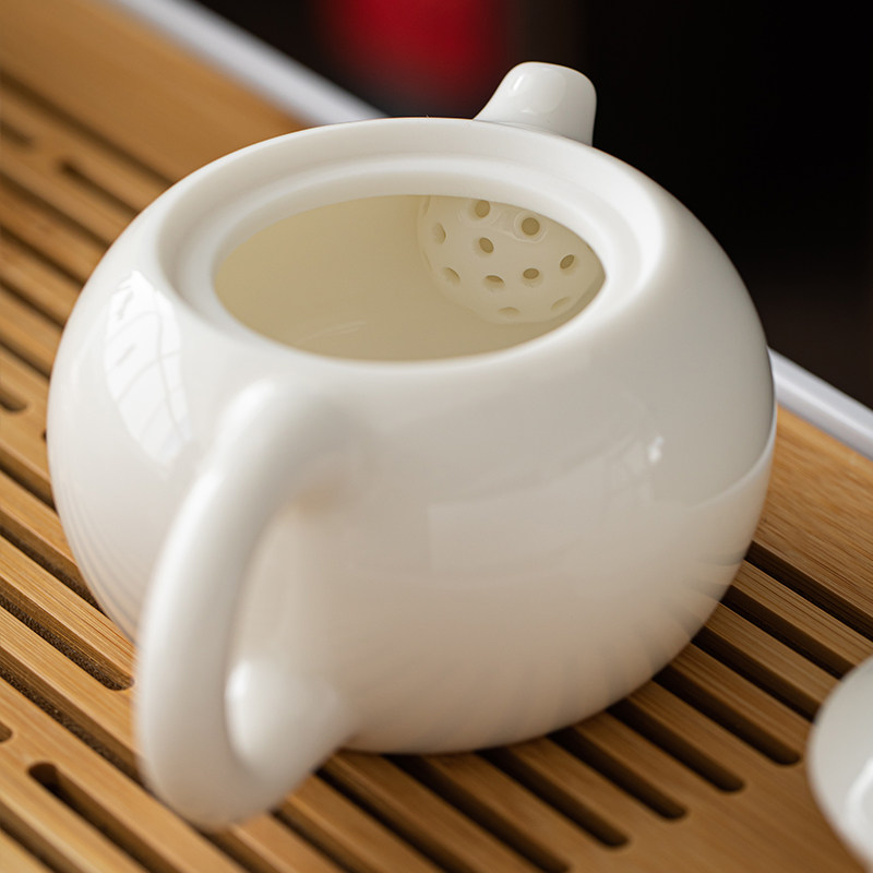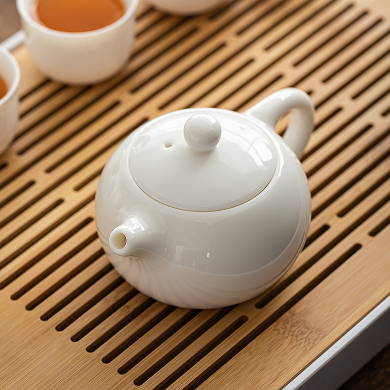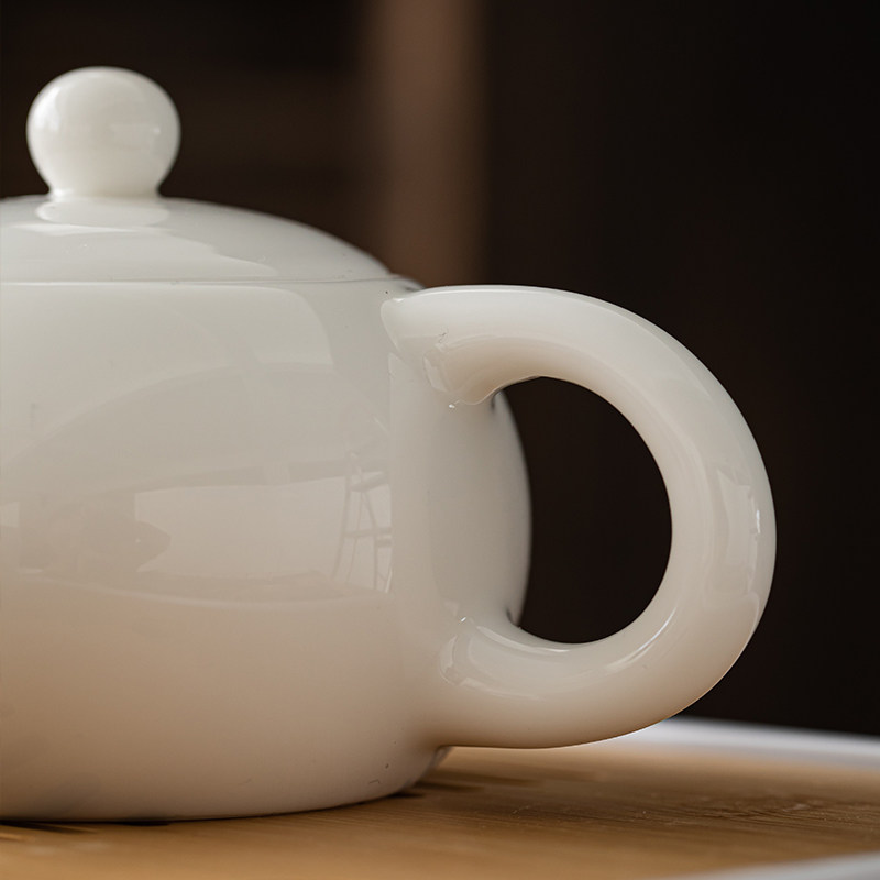 Dehua white porcelain sheep fat jade Kung Fu tea pot set Household simple ceramic single pot large handmade Shih Tzu pot