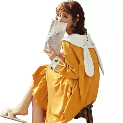 Very fairy nightdress women's autumn and winter cotton long sleeves Korean version of thin spring and autumn pajamas long dress long dress cotton home wear