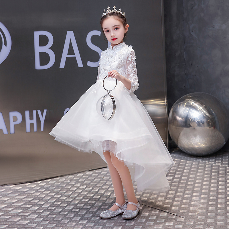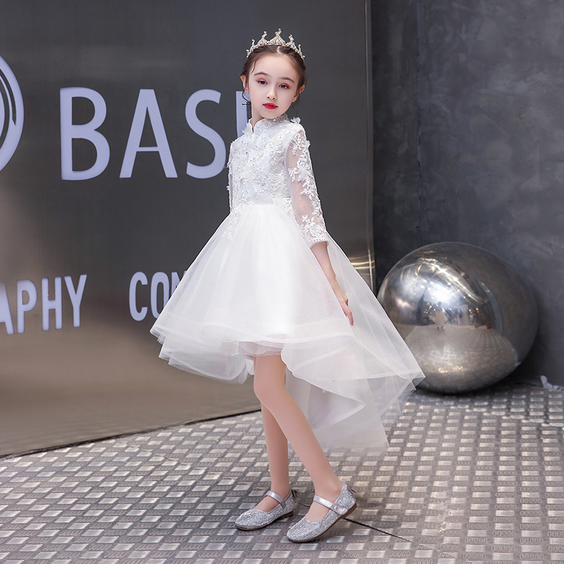 Girl's birthday evening dress Princess Pungbo yarn high-end walking children's piano show costume dragging flower child spring and summer