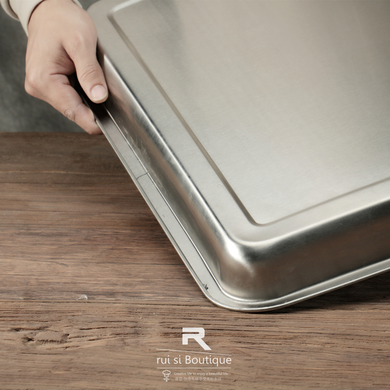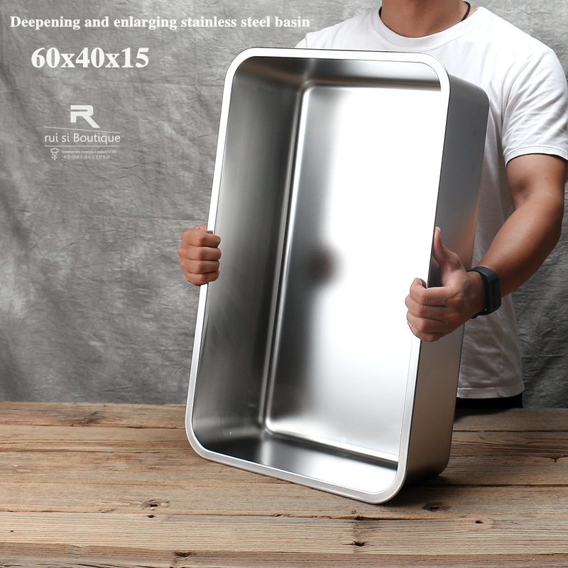 Extra-large deepened 304 stainless steel rectangular large tray thickened stainless steel food rotating material basin Drying plate iron plate