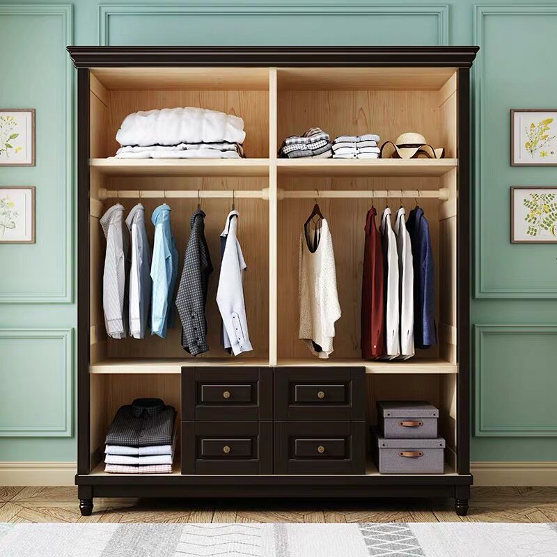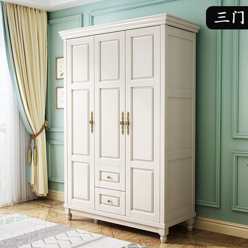 American solid wood wardrobe White 3 doors 4 doors Modern simple light luxury simple bedroom overall European economy wardrobe