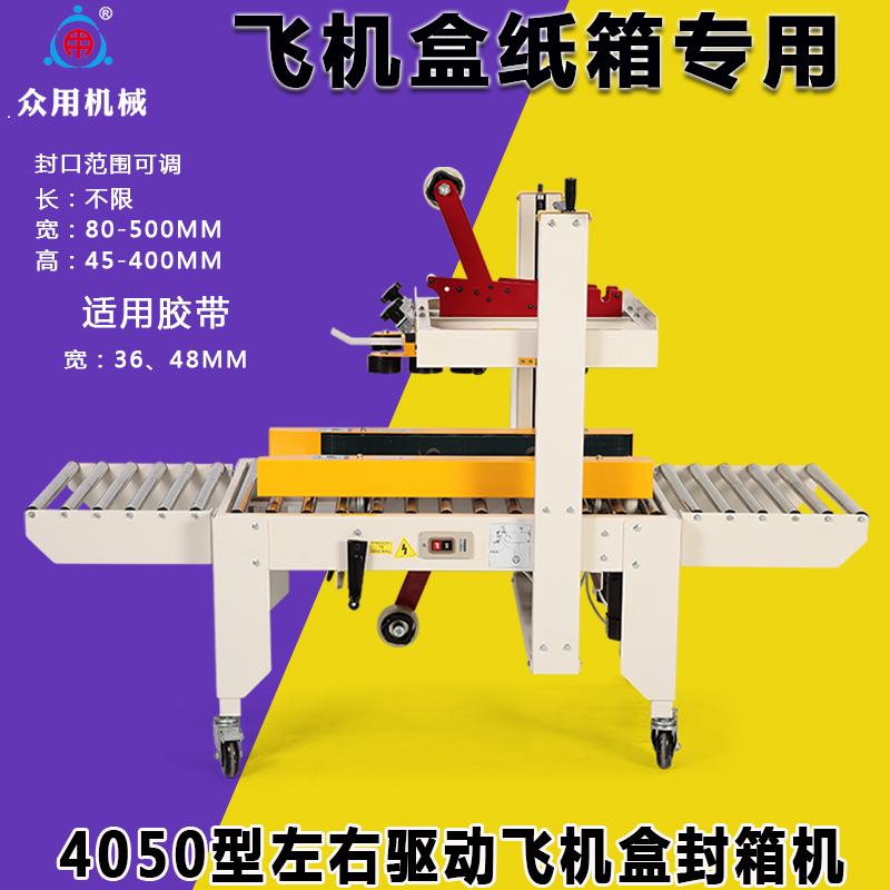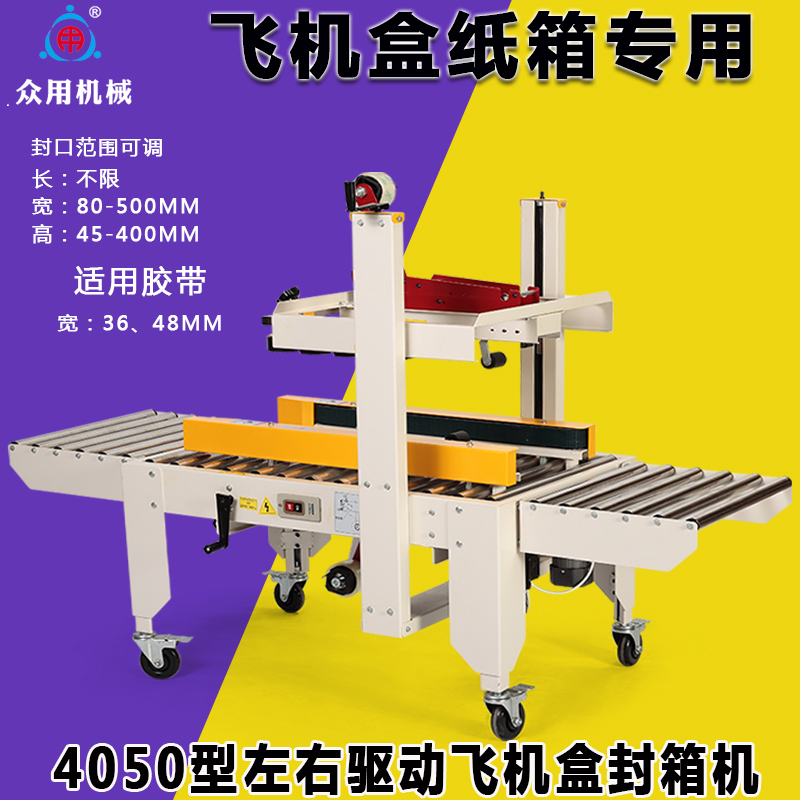 Crowdsourced 4050 fully automatic flat cardboard box sealing machine Post 1-12 small cardboard box left and right driving adhesive tape seal case machine express packer electric commercial special manufacturer direct sale