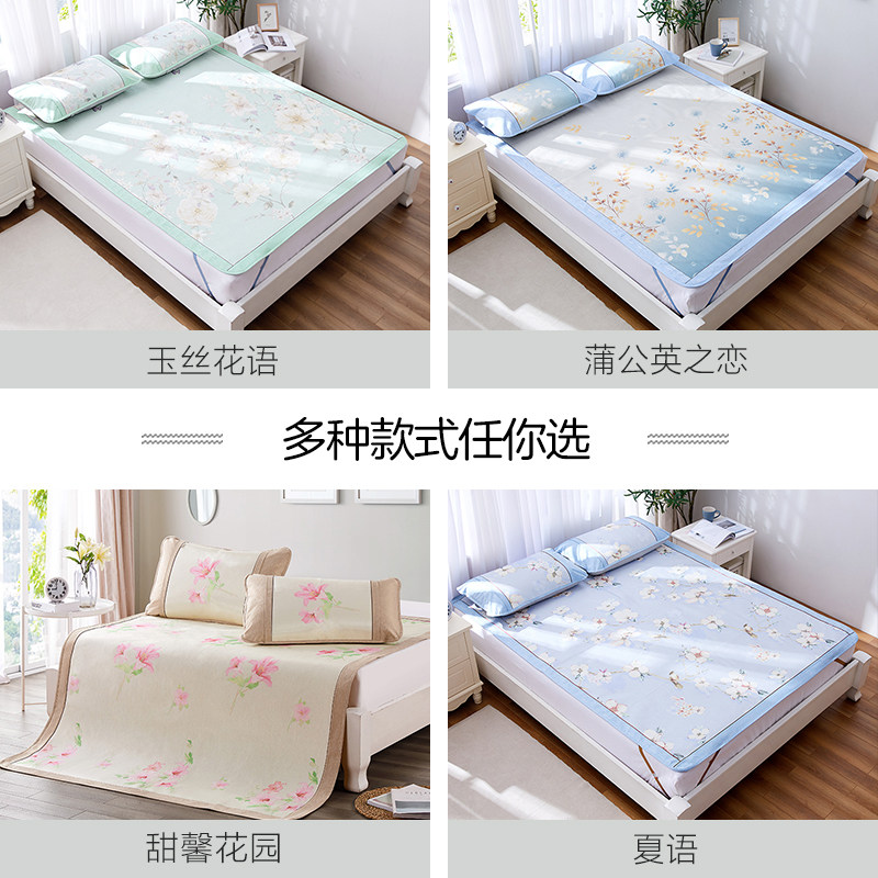 Jade silk flower language ice silk mat three-piece setZhixi ice silk mat two-three-piece set Set of sweet sweets