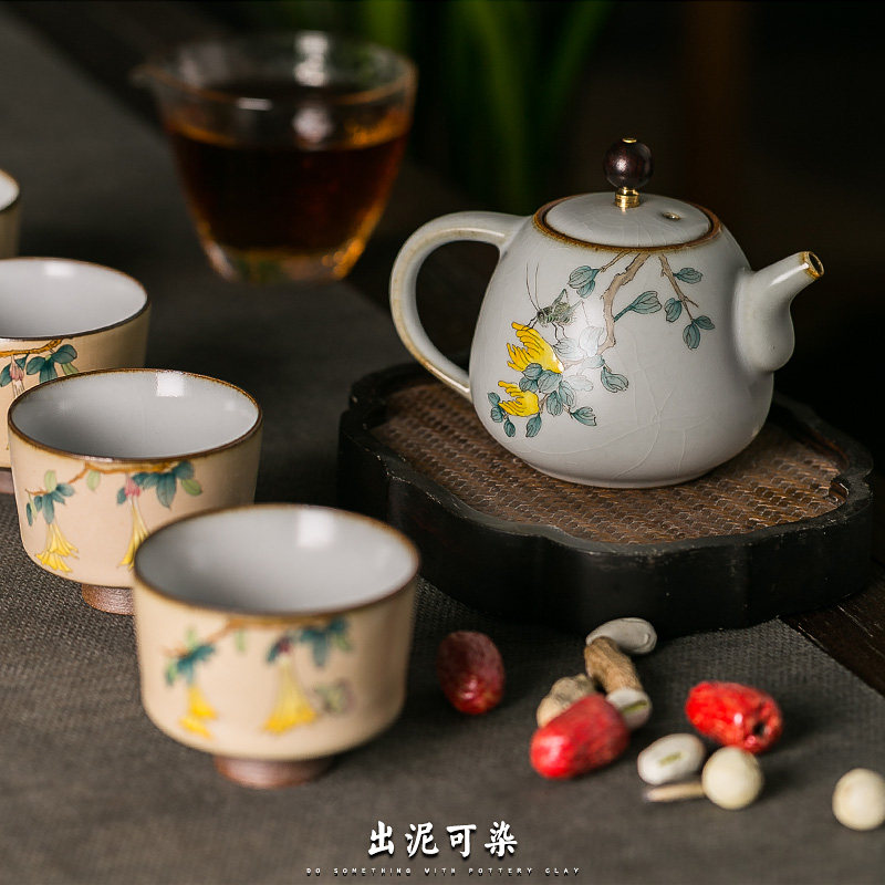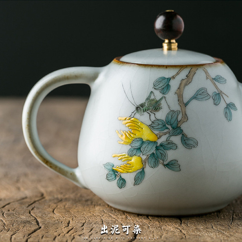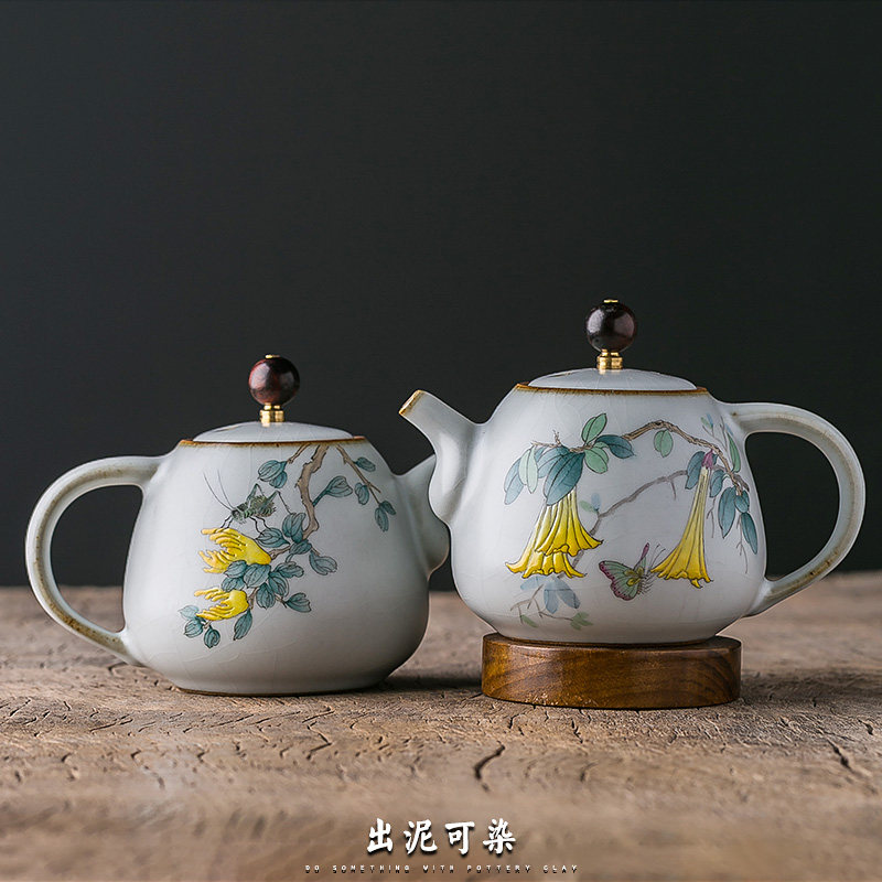 Out of the mud can be dyed pure hand-made Ru kiln open piece tea pot Jingdezhen ceramic filter household hand-painted Gongfu tea pot