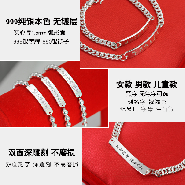 Private diy order custom couple silver bracelet female 999 sterling silver lettering name letter baby child zodiac boy