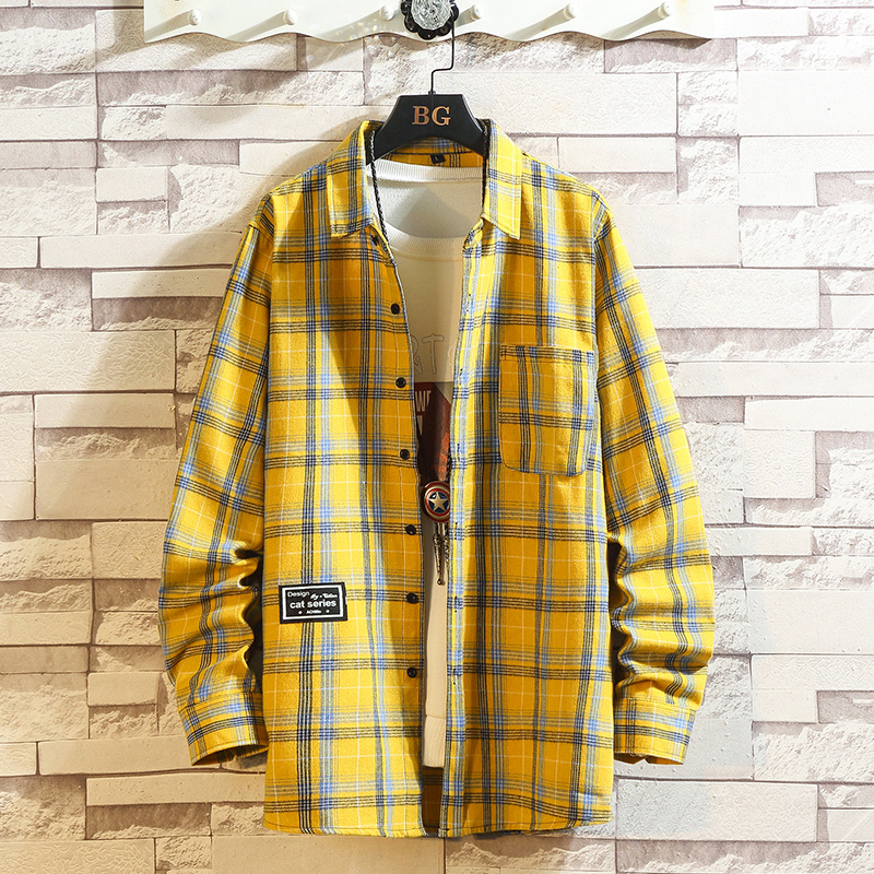 ins spring new pink plaid shirt male trend Korean version handsome car stickers 100 lap jacket personality shirt man