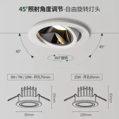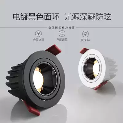 Spotlight LED ceiling light Embedded living room household anti-glare cob adjustable angle without main light downlight 75mm