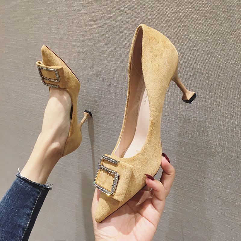 High heels women's autumn and winter thin heels 20-year-old beautiful girl pointed toe net red shallow mouth vibrato temperament elegant suede 5cm