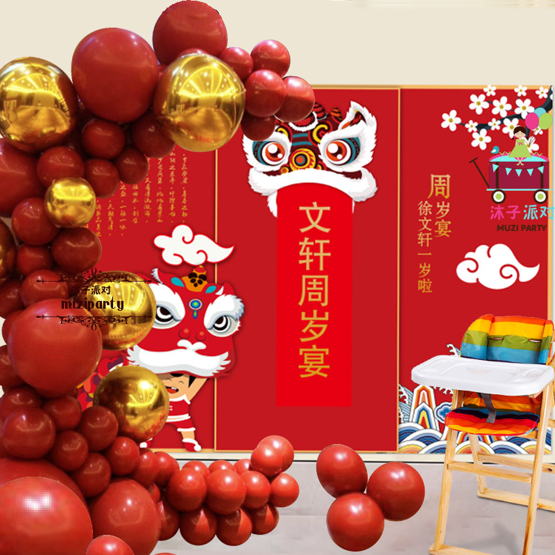 Chinese Red Chinese Ancient Wind Baby Banquet Children's Birthday Party Hundreds Of Days Banquet Sweet Taster Decoration Name Banner Cake Sign