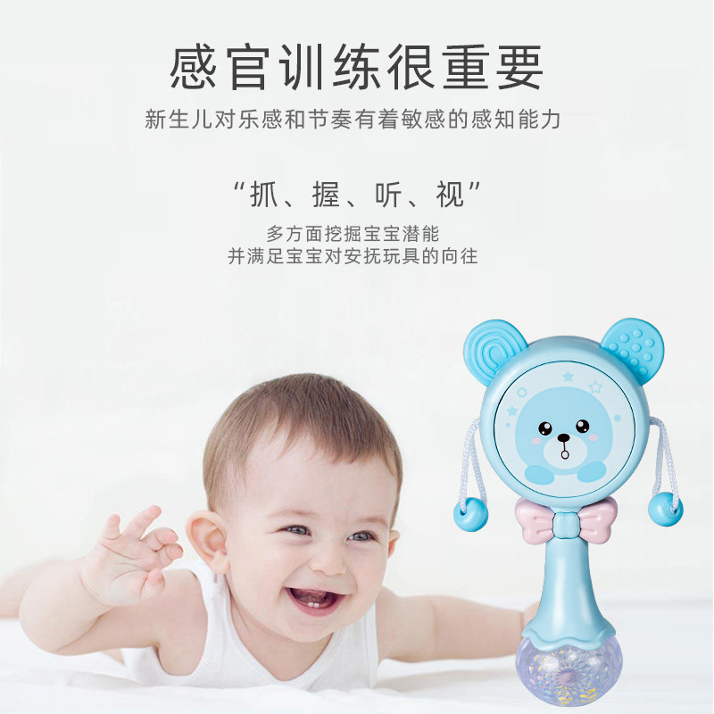 Giraffe rattle (without sound and light) Little pink pig rattle (without sound and light) (battery) Music rattle (blue) 2 small knives (battery) Music rattle (powder) 2