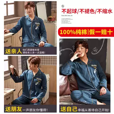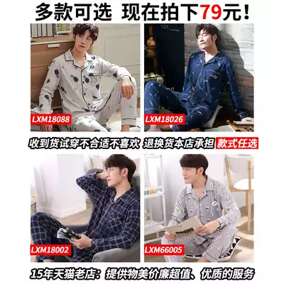 Pajamas men's cotton long-sleeved youth spring and autumn and winter models student summer thin casual cotton home wear suit
