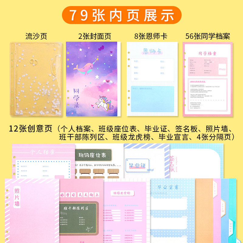 Douyin same type of classmate record primary school students sixth grade net red classmates record female graduation commemorative book little fairy girl heart cute quicksand junior high school students handbook type loose-leaf creative student record guestbook