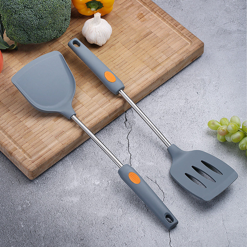 Stainless steel handle silicone 5-piece set (spatula + soup spoon + colander + frying spatula + hanger) stainless steel handle silicone 7-piece set (spatula + soup spoon + colander + frying spatula + noodle fishing + rice spoon + hanging rack)