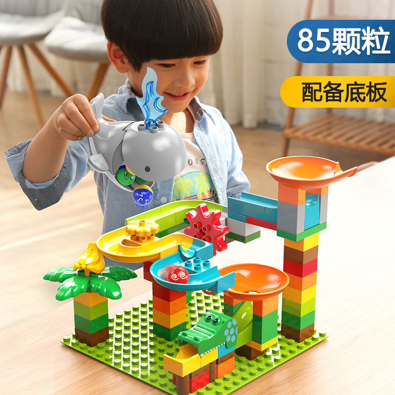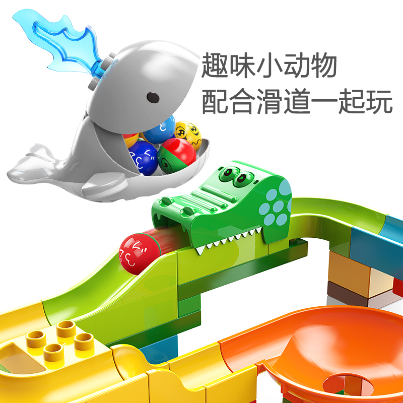 Feile large particles children assembled building blocks whale rotating slide toy boys and girls baby puzzle 1632