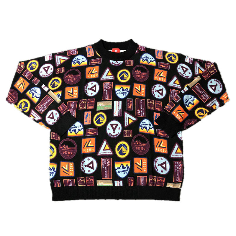 China Li Ning men's and women's wide-shouldered bat shirt jacket Fashion Week catwalk sports pullover sweater AMBP014