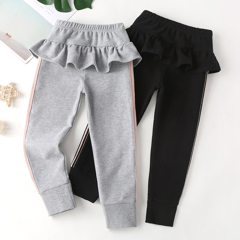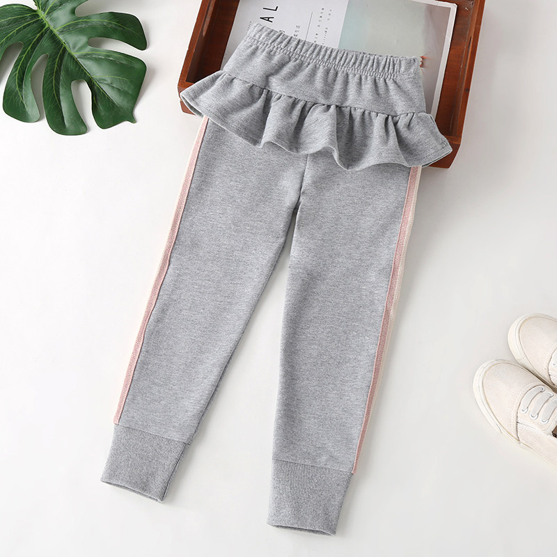 Girls spring and autumn casual pants, children's baby cotton ruffled culottes, children's foreign style outer wear thin long pants