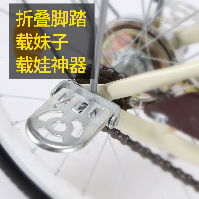 Bicycle back pedal folding accessories for a pair of foot-pin columns Universal children's back seat shelves can stand