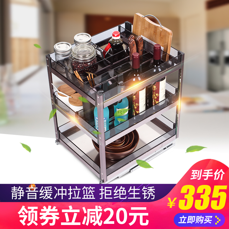 Webos integral cupboard seasoning pull basket seasoning kitchen?Glass drawer-type damping vertical pull-in-blue inside with car seasoned frame