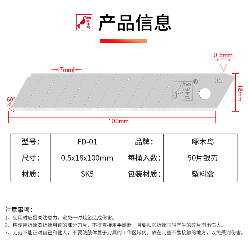 Woodpecker Blade FD-01 Full Silver Merino Knife Blade Industrial Beauty Work Knife Sheet Wallpaper Blade 50 Pieces Fit