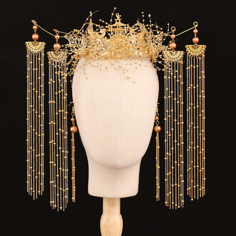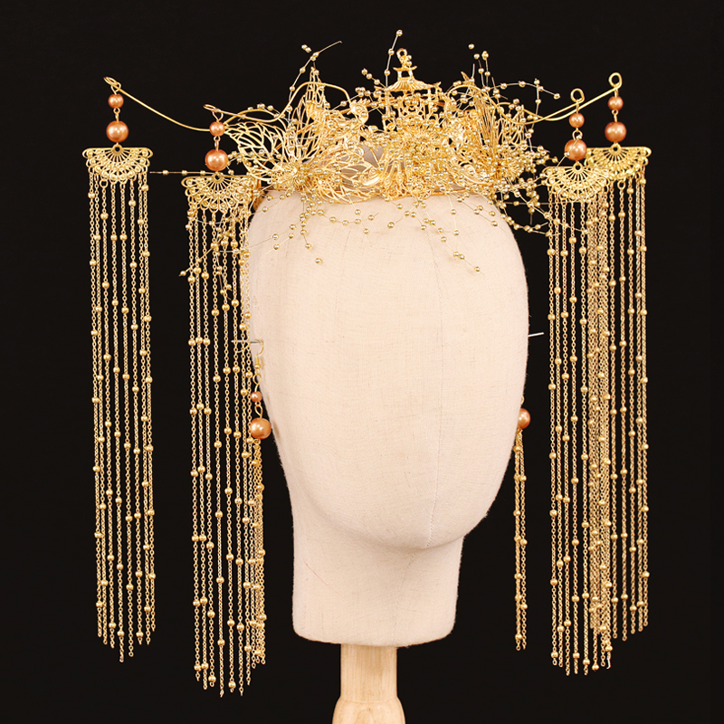 Bride Xiuhe headdress Chinese atmospheric luxury Xiuhe dress phoenix crown hair ornament wedding step shaking fringe woman 2020 new model