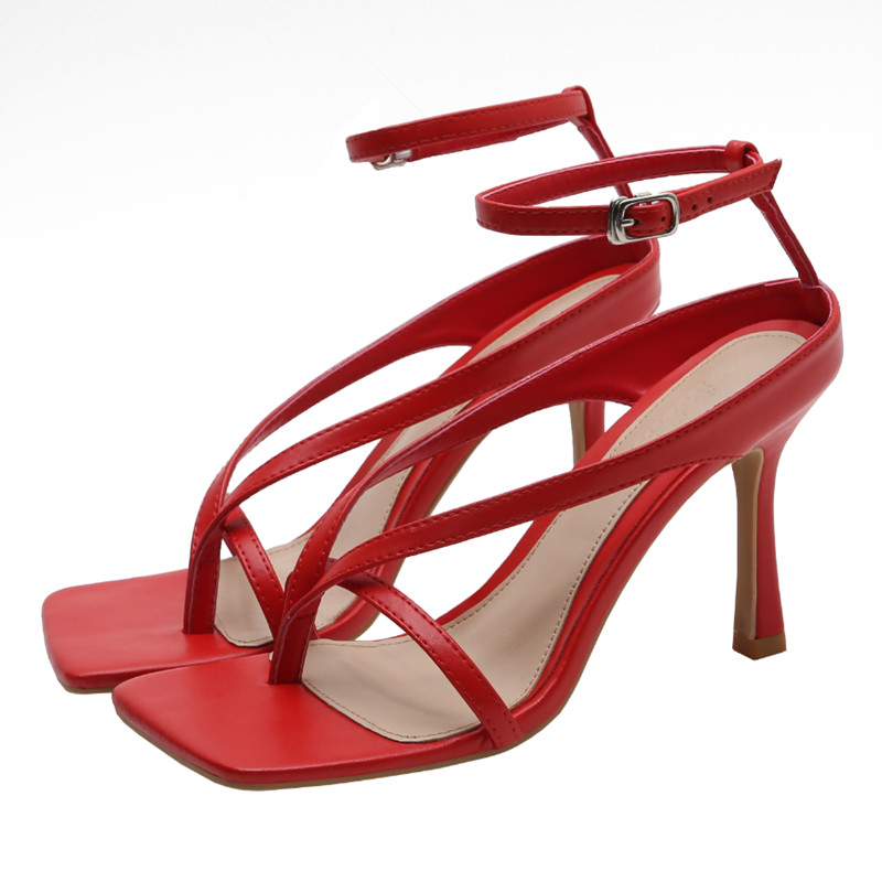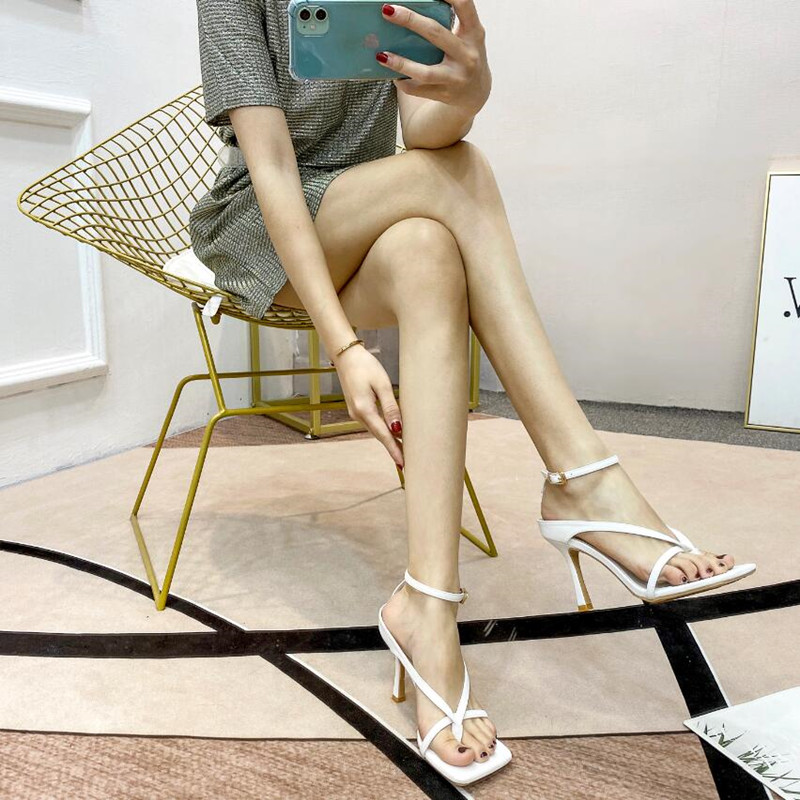 2022 new sandals women's summer season with high heel shoes finer with square head white nipped Roman fashion black